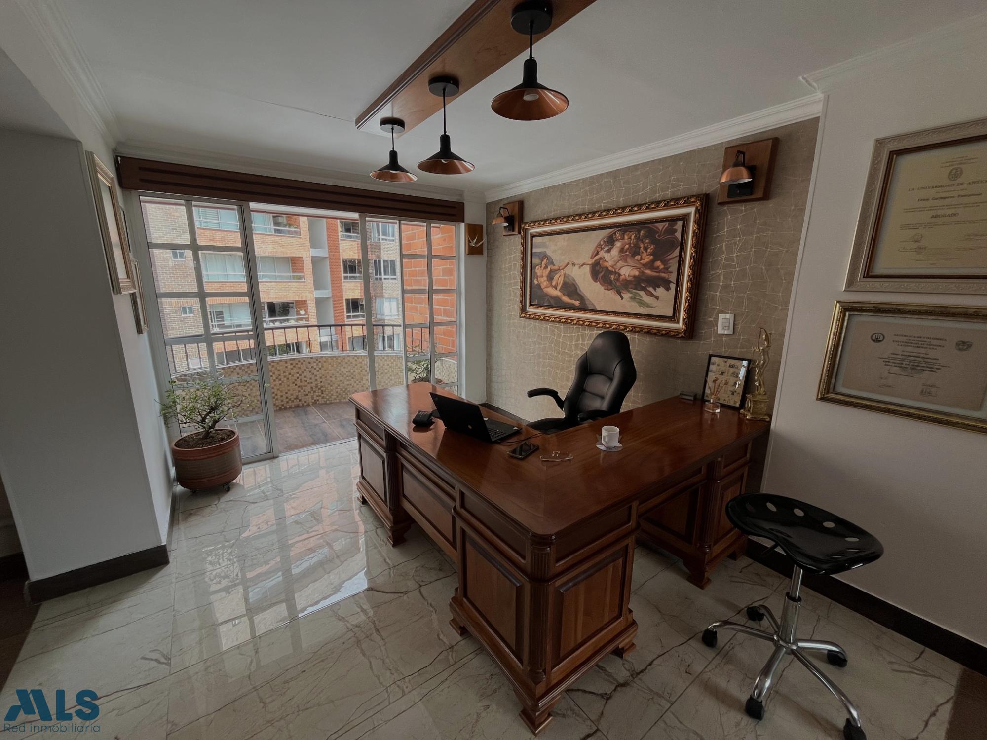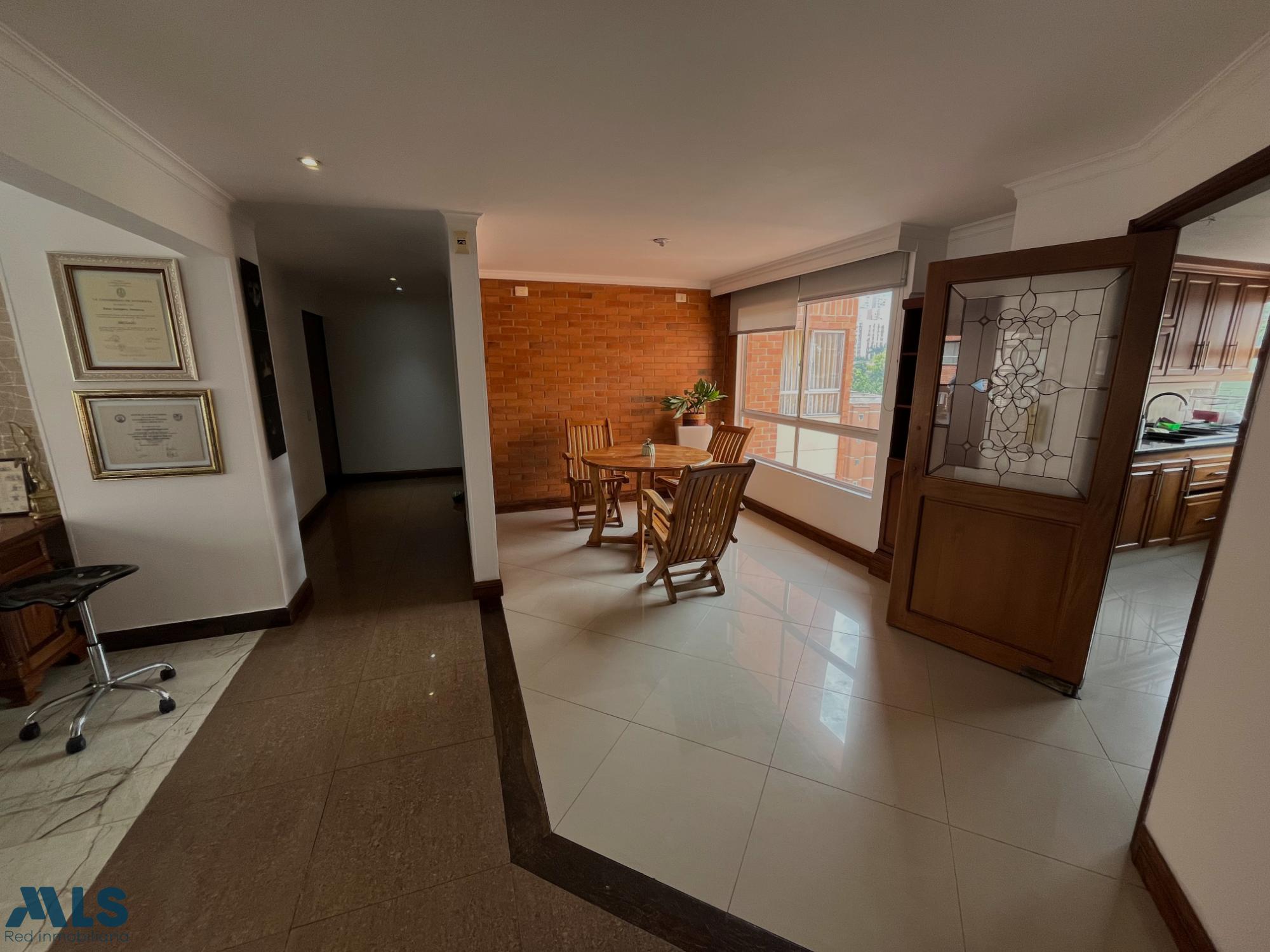 Apartamento en venta Envigado sector Pontevedra, muy central,cerca de la avenida el poblado,supermercados,restaurantes,iglesias,parque principal de envigado,facil acceso a las avenidas principales, buenas rutas de transporte. Excelente distribución e iluminado, 300 mts disribuidos en dos niveles, 30 mts de terraza, sala comedor independiente,sala de tv, cocina integral, zona de ropas independiente,balcon en el area social, biblioteca con salida a la terraza, cuatro habitaciones cada una con baño y vestier,dos de ellas con balcon, alcoba principal con baño privado, vestier doble, pisos en porcelanato en zona social y madera laminada en la alcobas. parqueadero cubierto doble paralelo, cuarto util. Edificio con porterÃa 24horas, circuito cerrado de tv,ascensor,salón social,parqueadero de visitantes.