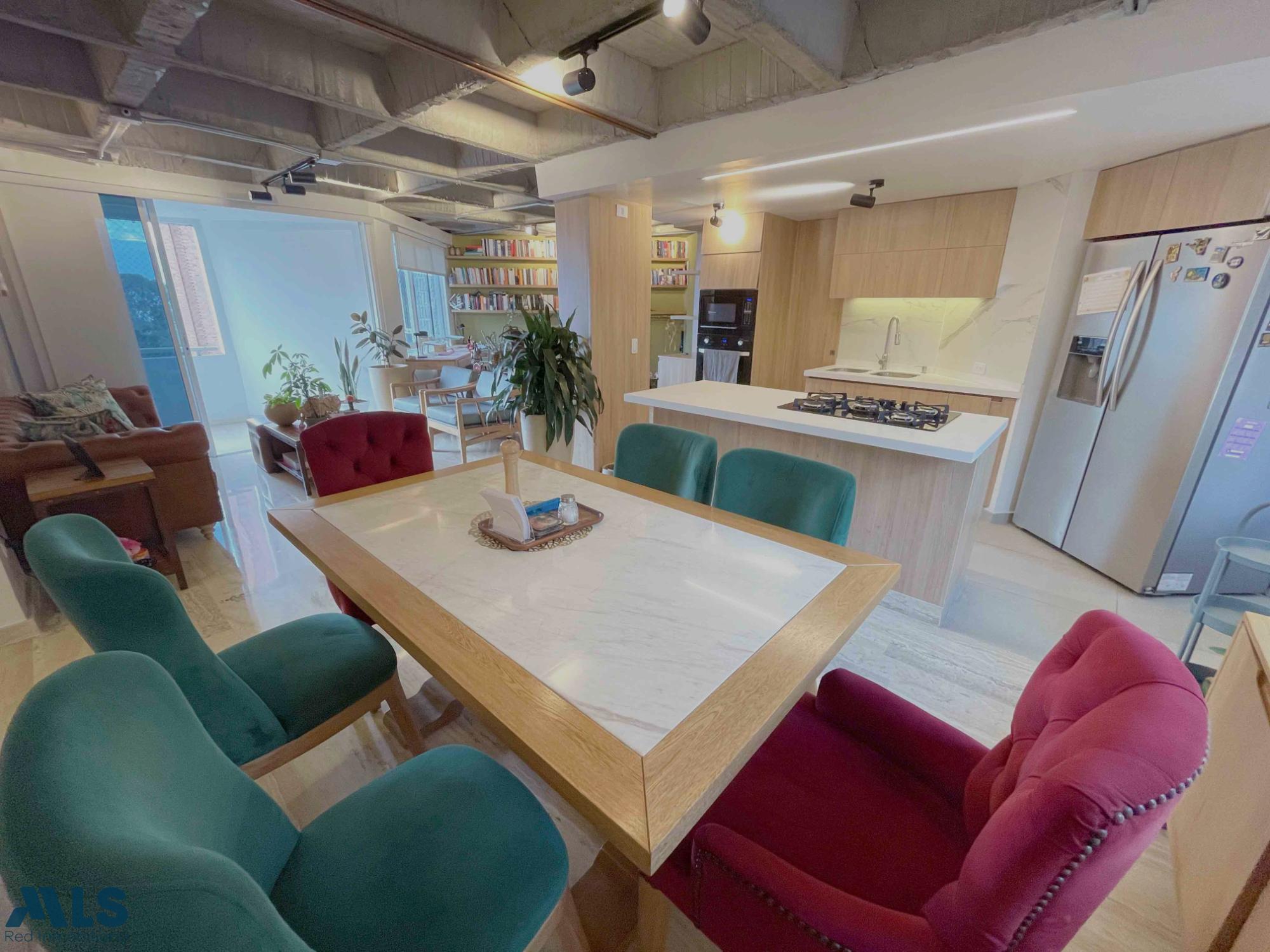 - 108 mt. - 3 Habitaciones. - 2 Baños completos. - 1 Baño social. - Cocina integral abierta con barra. - Sala Comedor. - Amplio Balcón. - Zona de ropas. - Estudio. - Cuarto útil. - 2 Parqueaderos. La unidad cuenta con: - Vigilancia 24 horas. - Ascensor. - BBQ. - Turco. - Sauna. - Piscina. - Gimnasio. - Salón social.
