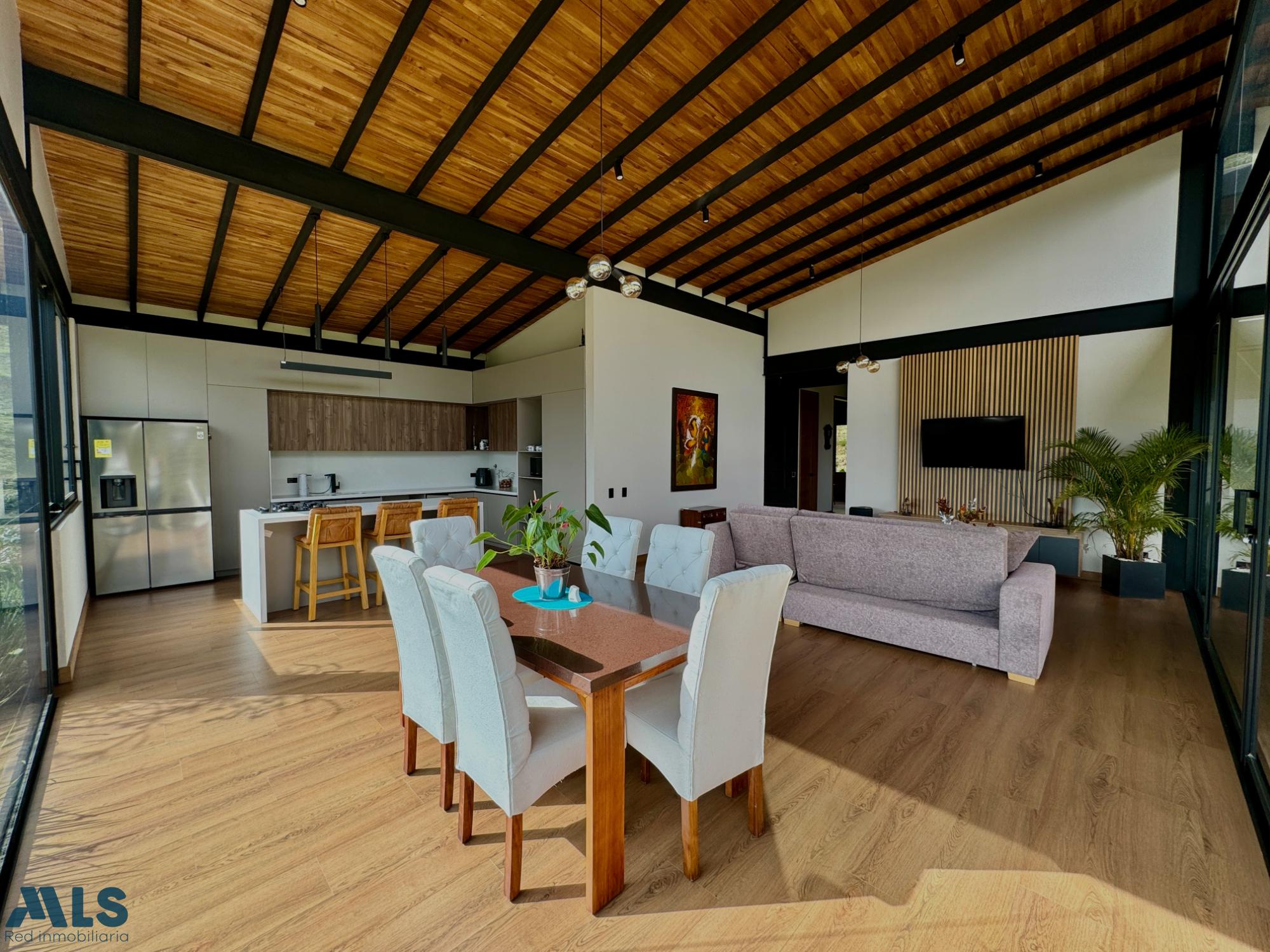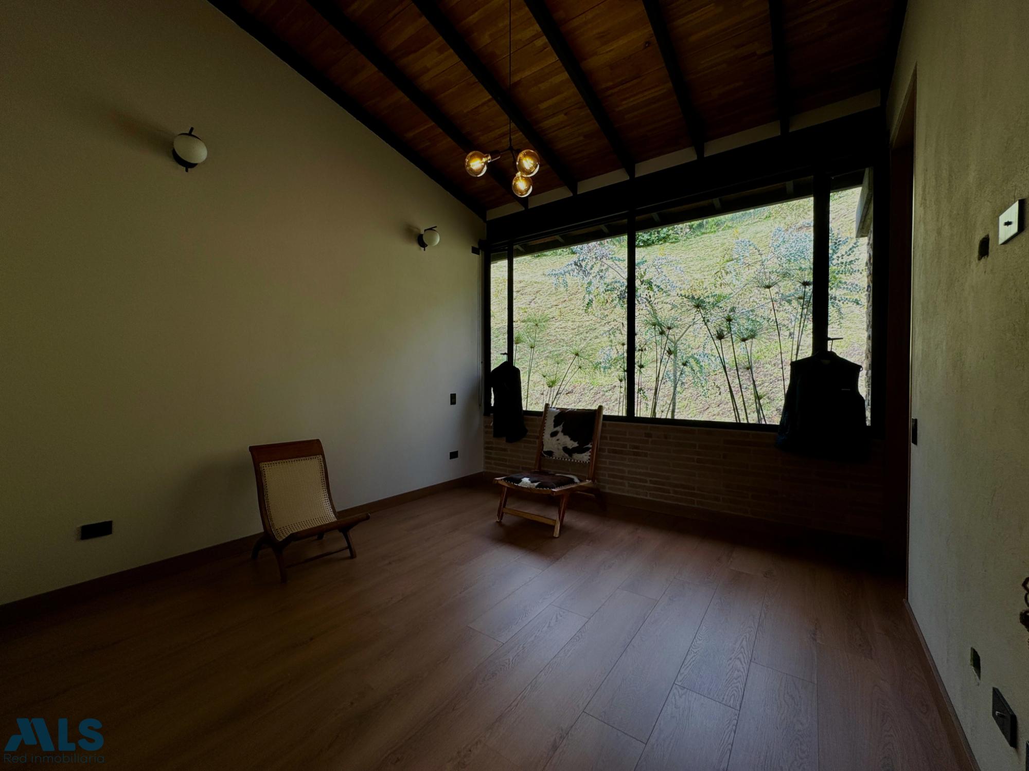 Esta hermosa propiedad campestre se encuentra ubicada en la exclusiva zona de El Retiro, Antioquia. Con una impresionante área de terreno de 2626 m y una cómoda área privada de 288 m, este inmueble ofrece la combinación perfecta de tranquilidad y amplitud. Cuenta con 3 habitaciones amplias cada una con baño y walking closet, este hogar es ideal para familias que buscan un espacio amplio y acogedor para disfrutar de la naturaleza. Al ingresar a la propiedad, podrás encontrar numerosas comodidades que la hacen aún más atractiva. Desde armarios empotrados hasta un espacioso deck con vista panorámica, cada detalle ha sido cuidadosamente diseñado para brindarte una experiencia de vida placentera. La cocina tipo americano con barra estilo americano, los clósets y los pisos laminados y de madera, son solo algunas de las caracterÃsticas que hacen de este inmueble un lugar moderno y elegante. También cuenta con un hall de alcobas, ideal para disfrutar de momentos de lectura o trabajo tranquilos y una zona de lavanderÃa totalmente equipada para tu comodidad. Pero no solo en su interior encontrarás comodidades. El acceso pavimentado, los árboles frutales y la vegetación nativa que rodea la propiedad, brindan una sensación rural sin tener que alejarte de la ciudad. Además, la propiedad está ubicada cerca de centros comerciales, colegios y universidades, ofreciendo comodidad y accesibilidad. También cuenta con porterÃa y vigilancia para asegurar tu seguridad y tranquilidad.